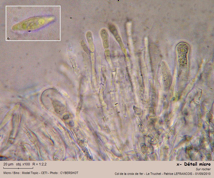 Toujours au même endroit sur les rochers, superbes apothécies de grandes dimensions (<5mm), thalle formé de squames verdâtres.