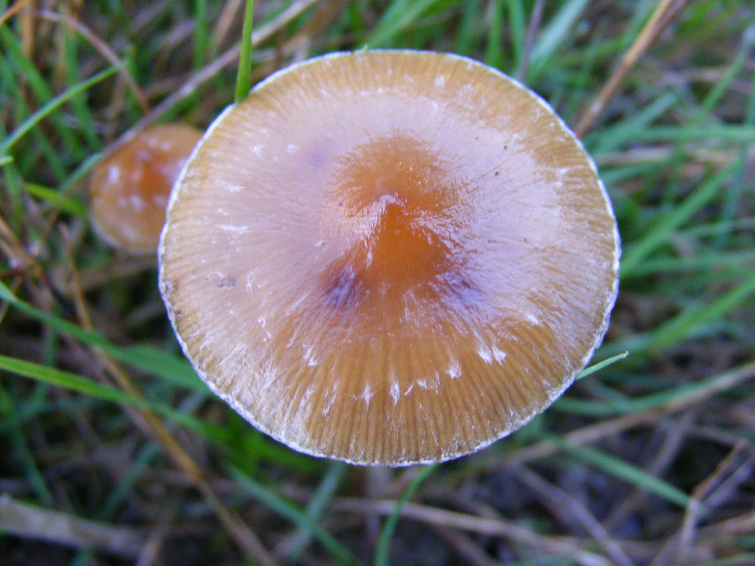 spores. Psilocybe liniformans, another bluing species on horse-dung,