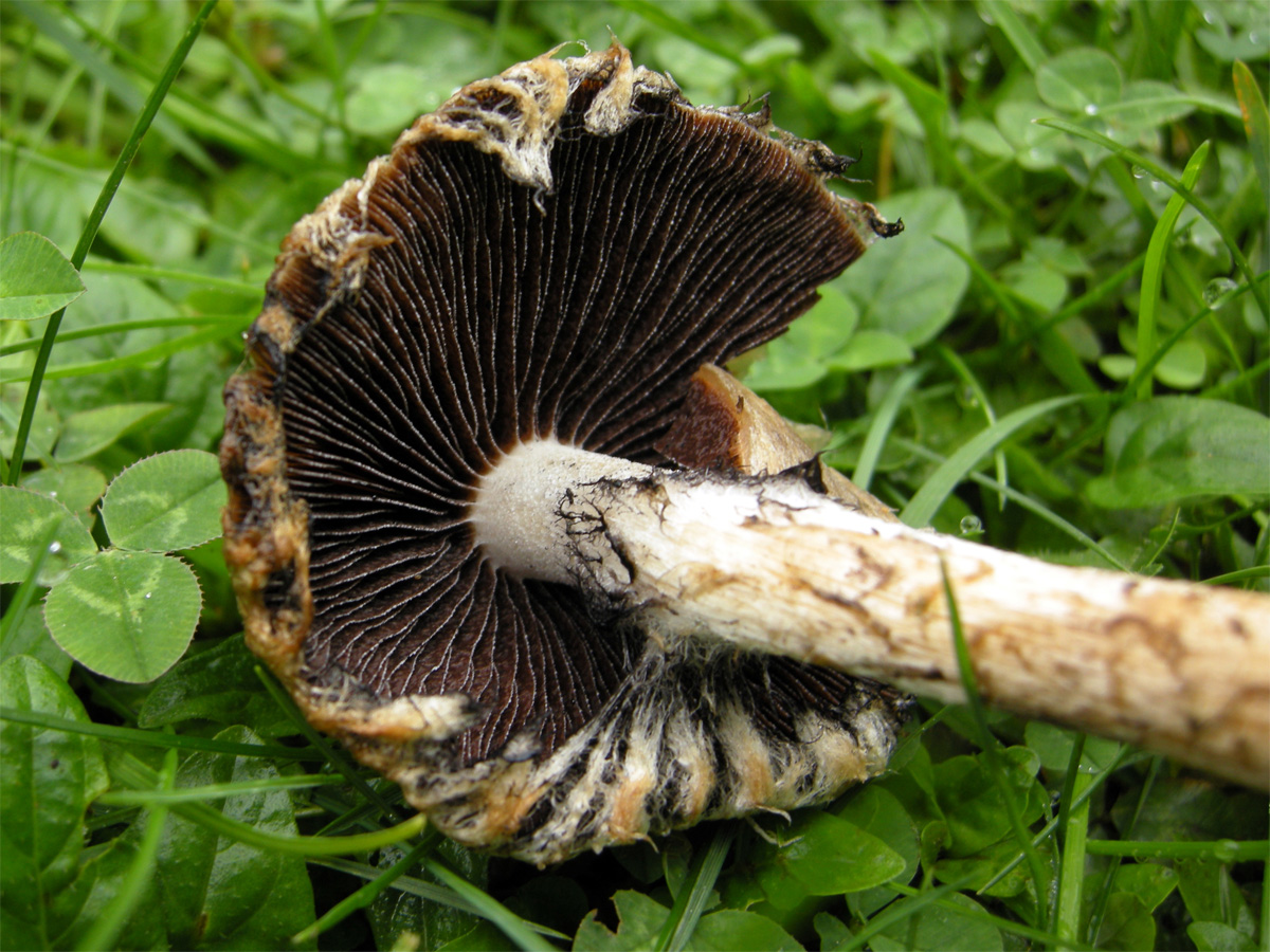 Je crois que j'ai déjà présenté ce champignon ici il y a un an ou deux, cette fois-ci il pousse dans l'herbe et non sur terre nue, je voudrais juste vérifier qu'il s'agit des mêmes Lacrymaria lacrymabunda. Brunoy (Essonne), 22/09/13, dans jardin (pelouse), pas (encore ?) de larmes, pas d'odeur particulière, sporée brun foncé.