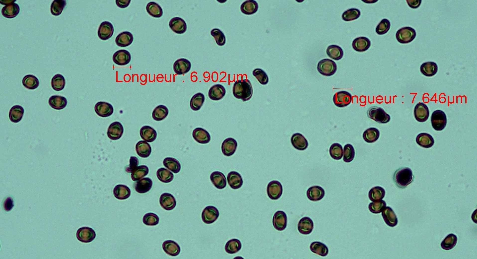 La sporée est brun noir sur la lame de verre et les spores sont elliptiques: