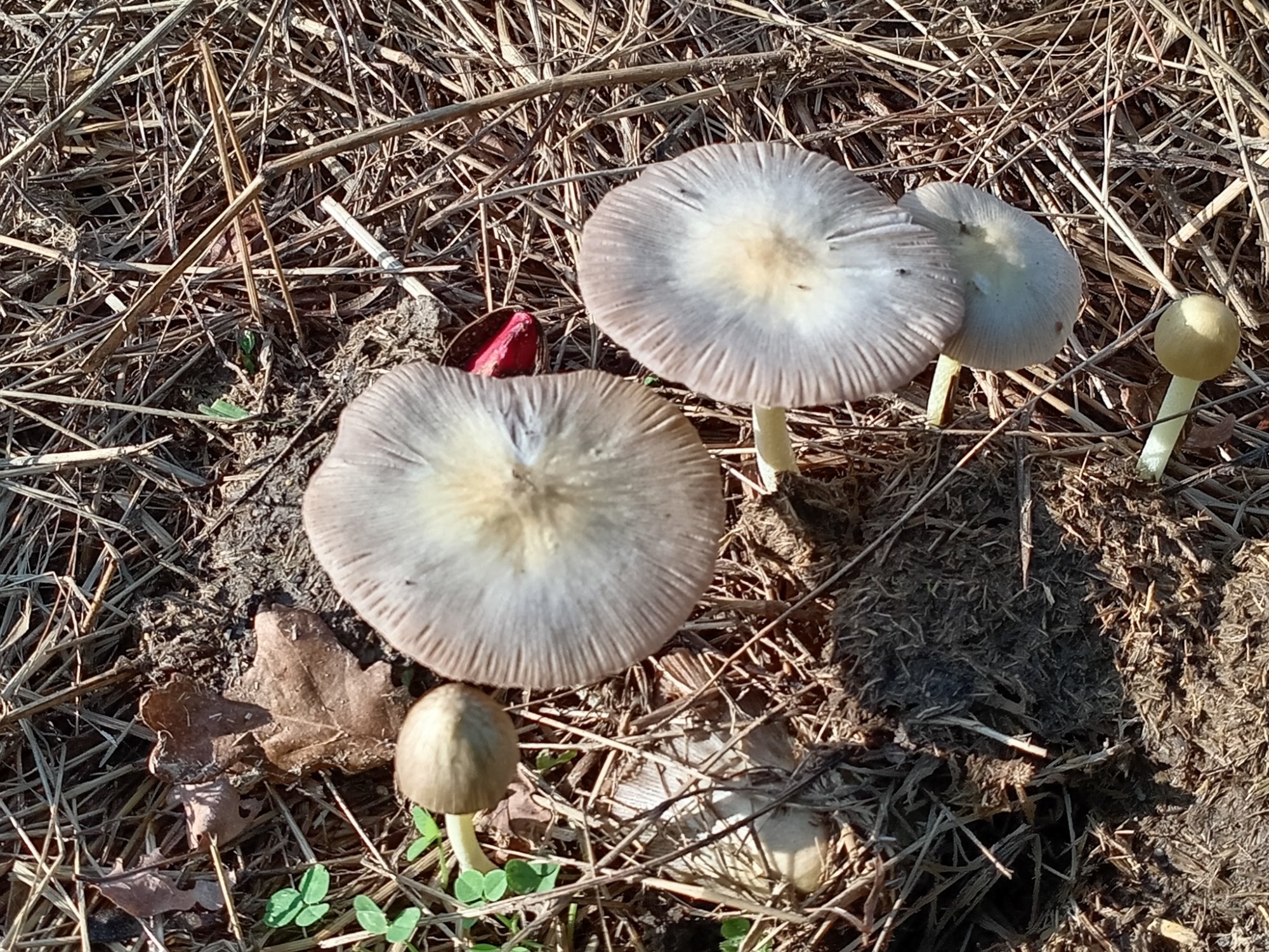 Quant au premier spécimen, au vu du chapeau ouvert tel un parasol, mon intuition d'un psilocybe semilanceata s'avère fausse. J'étais sceptique concernant la suggestion d'un bolet jaune d'œuf parce que je trouvais le chapeau trop conique et surtout pas assez jaune (juste doré sur le dessus), mais en voyant à quoi ressemblent les plus jeunes (petite boule jaunâtre) et les plus vieux (parasol bien droit et strié), il y a une très proche concordance. Deuxième technique d'identification : les stades de maturité.