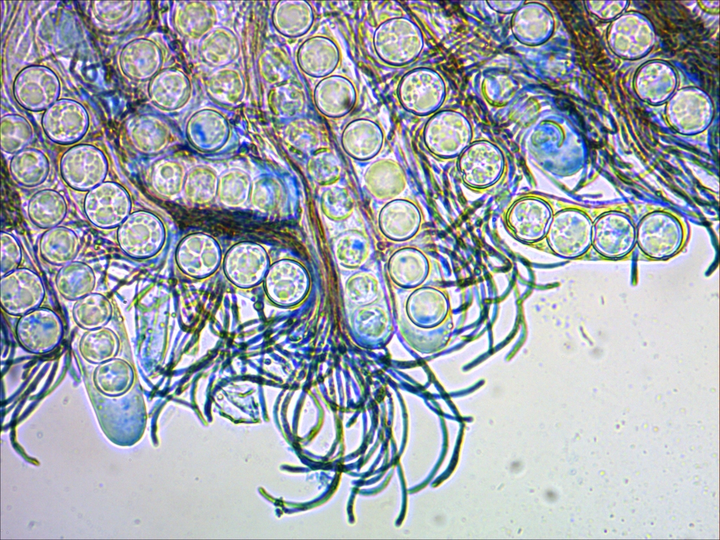 Paraphyses parfois divisées, spores d'environ 15µ...