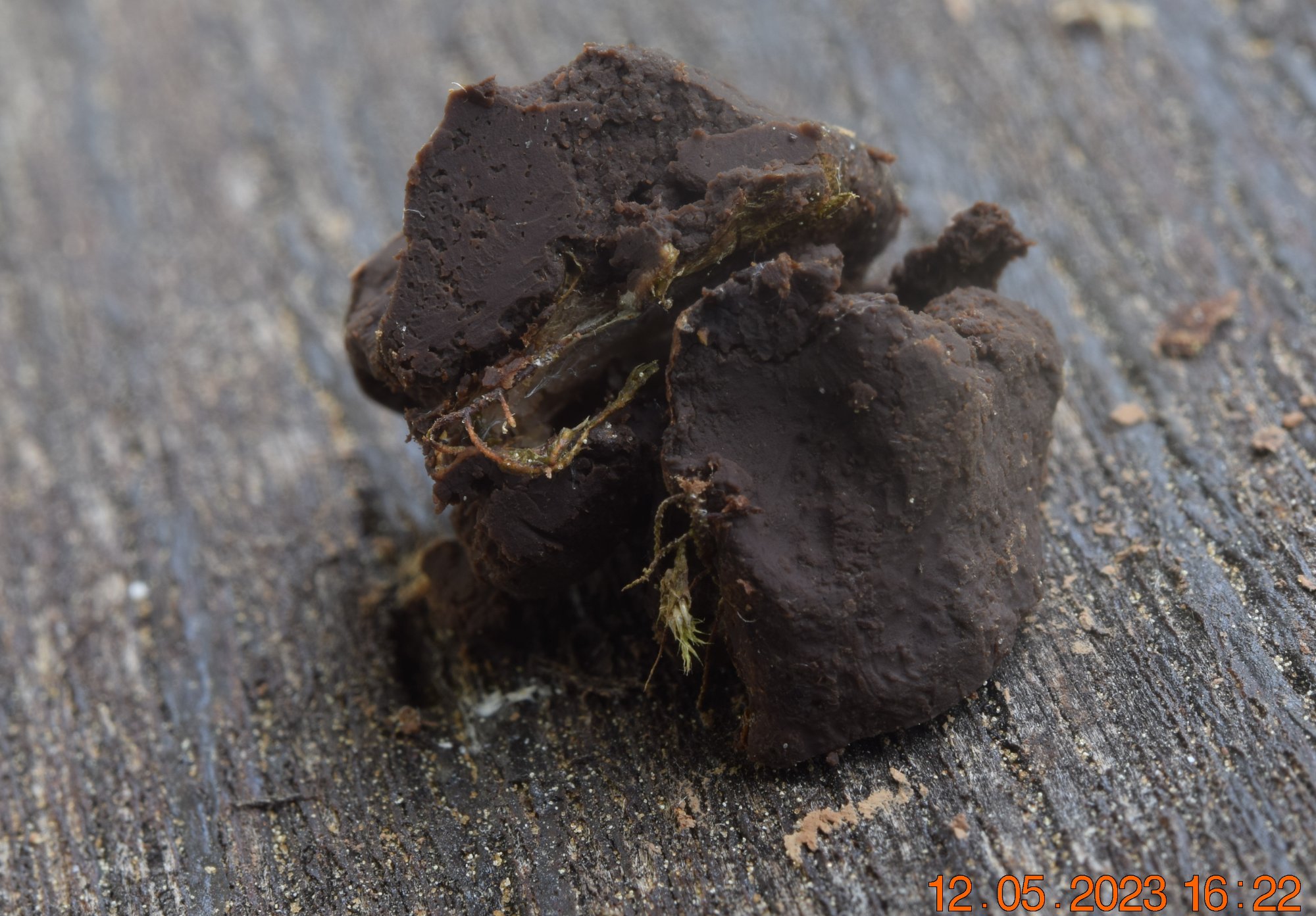Sur branche morte au sol, 3 cm. Je n'ai pas observé de formation d'une peau comme celle que j'avais vu sur R. lycoperdon. Peut-être n'ai-je pas assez attendu avant de la couper ?