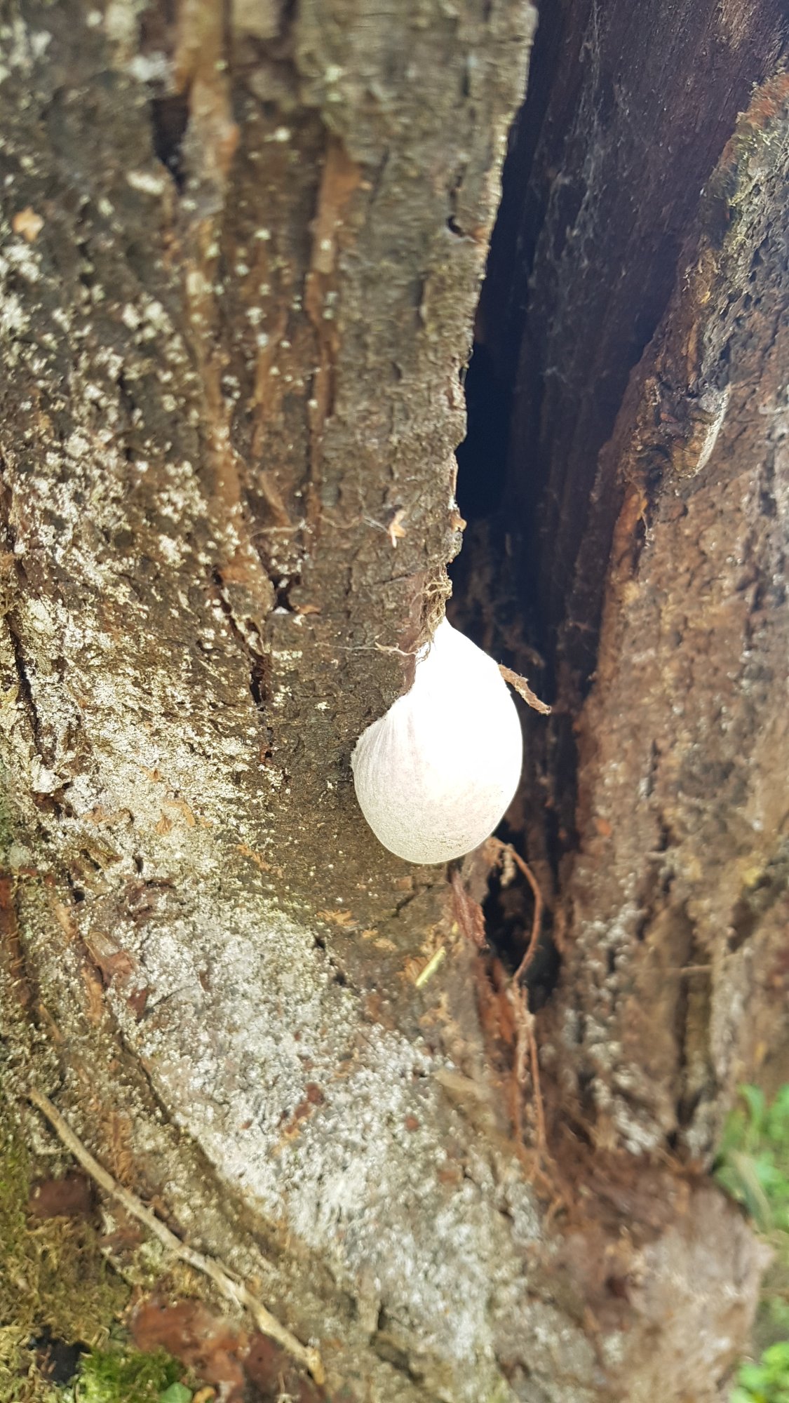 Le premier, une boule blanche plutôt molle accrochée à l'écorce