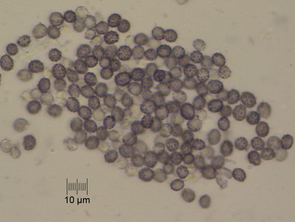 Je n'ai pas eu le temps de faire des mesures des spores, mais je ne pense pas que cela aurait été significatif étant donné que j'ai effectué la préparation à partir d'un morceau de l'arête des lames et non d'une sporée. Ma tentative de micro en x1000 fut un échec.