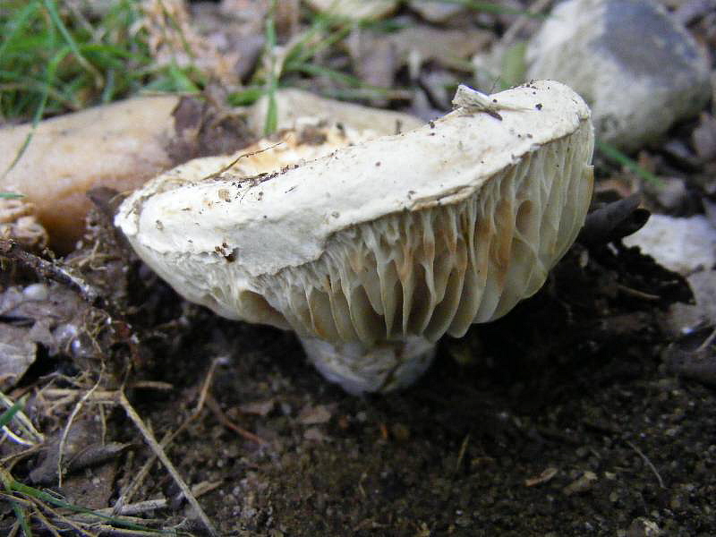 Champignon très compacte aux lames anastomoséesor voici ce que dit myconord : 10. Sous pins maritimes, sabulicole (surtout méridional). Lames non anastomosées. Revêtement mat, ochracé roussâtre : Russula littoralis