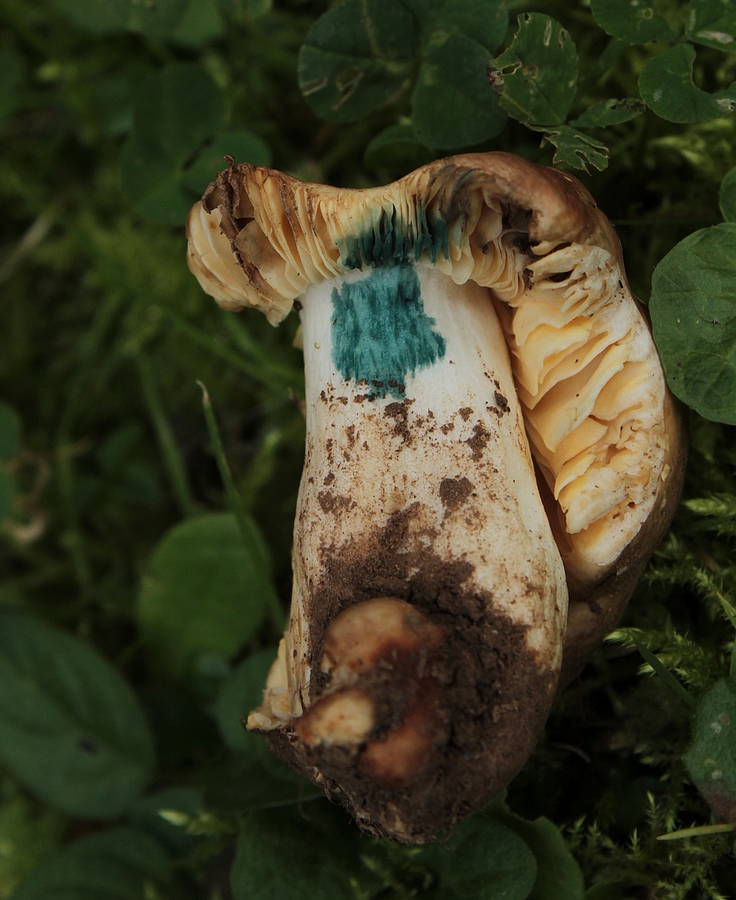Je suis retourné ce matin ou je l'avais trouvée, il n'y a pas grand chose à pousser (tout champignons confondus, même si on a eu pas mal d'eau récemment) j'en ai quand même vu deux jeunes (russules) sous l'épicéa, je vais samedi à une expo pour donner un petit coup de main, je pense que dans la bande de mycologues certains auront des réactifs, je passerai samedi matin pour les prendre si les limaces ne sont pas passées avant moi.