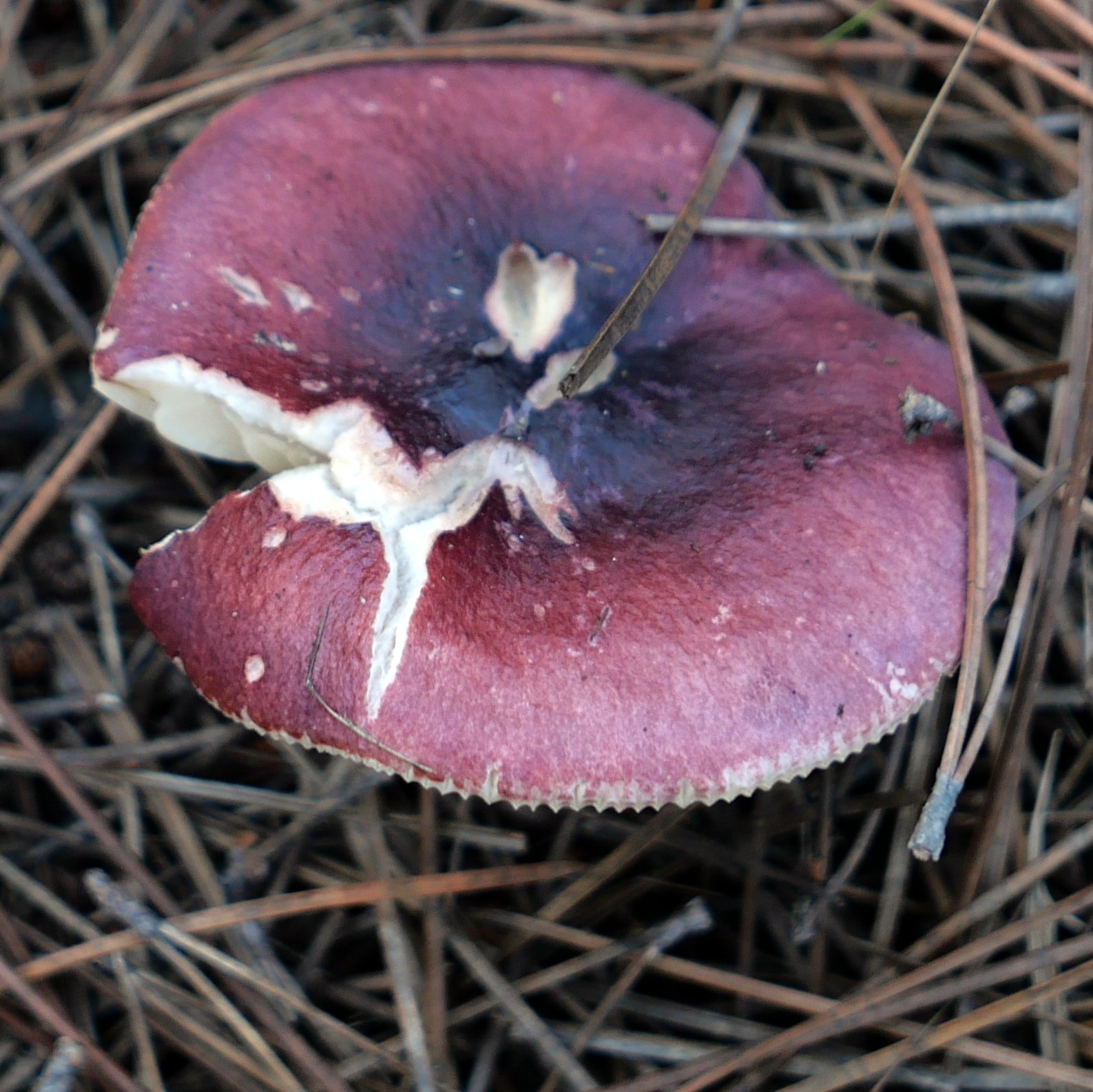 Une russule violette à pied violet, sous pins, j'ai pensé à sardonia puis finalement je me demande si torulosa n'irait pas mieux... et s'il y a d'autres candidates.