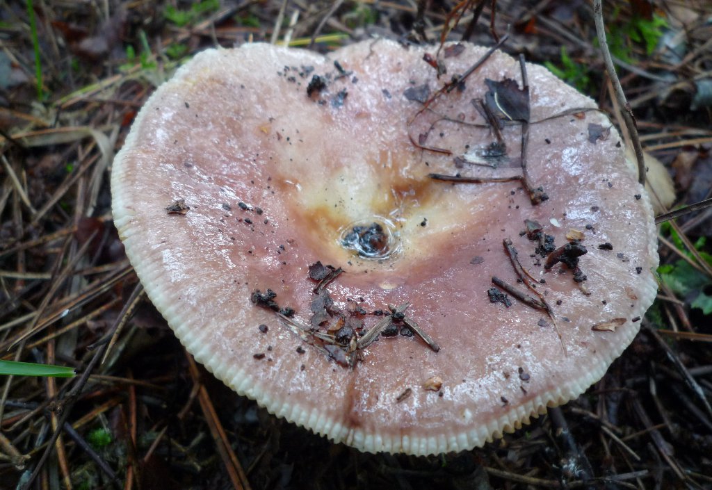 Chapeau : couleur rose (assez proche du jambon cuit comme dit le GEPR), au centre crème. Marge blanche. Maximum mesuré : 12 cm de diamètre.