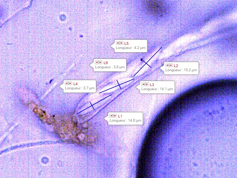 J'en ai mesuré à l'intérieur des asques et quelques-unes à l'extérieur.