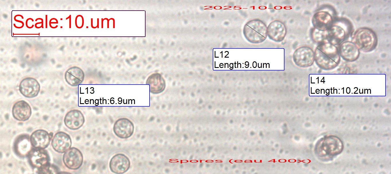 J'ai personnellement du mal à y voir ferruginea que j'avais présentée l'année dernière avec effectivement des spores de 11/12 µ et une couleur franchement rouille.
