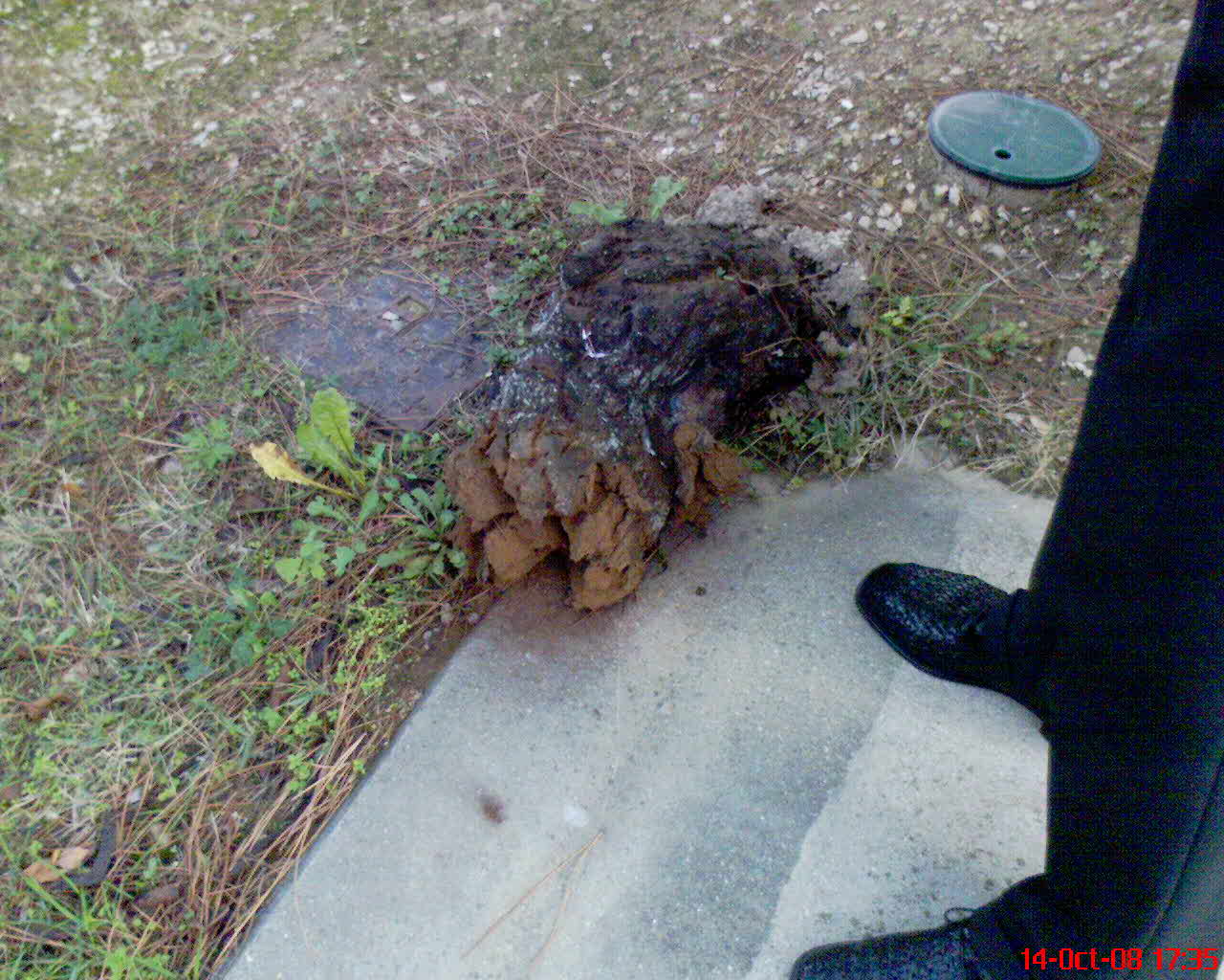 L'objet est sortie de terre et ressemble à un bout de tronc dont l'écorce craquelle, de 15 à 20 cm de diamètre et de 30 à 40 cm de long. Son extrémité se dilette laisser sourdre une sporée couleur tabac.