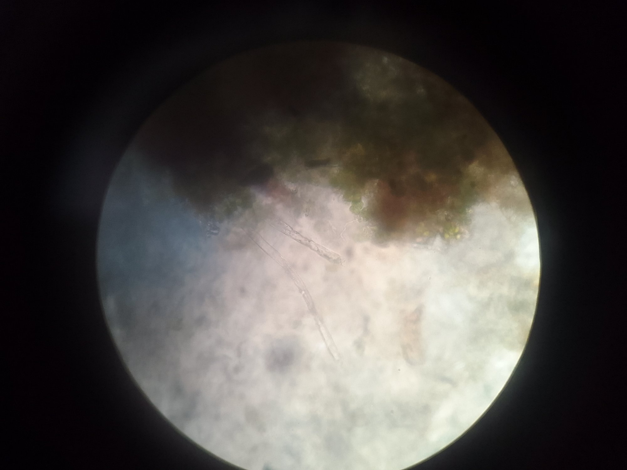 Les micros que j'ai réalisées sont décevantes. Si ce sont des spores, leur forme est étrange. Présence de témoins d'A.bisporus largeur 5 microns.