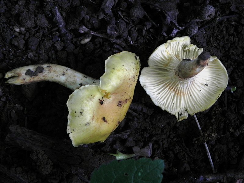 "C.ferruginascens est ± jaune citron,souvent à tons olivâtres, et jaunit fortement sur le pied."