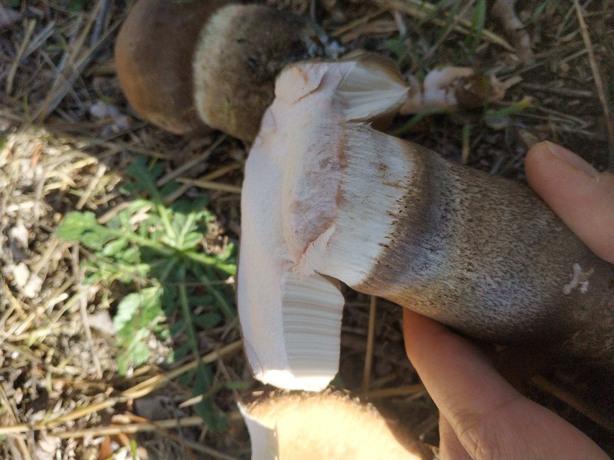 Gros bolets sous peuplier, pied bleuissant