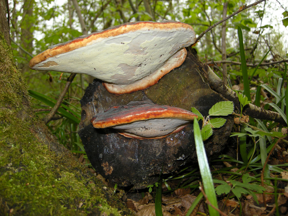 Il n'y avait aucun conifère alentour, c'est sûr. Bouleau, pourquoi pas, mais le flanc de la bûche (que j'eusse dû photographier) m'a paru plus strié. Sauf avis d'un (plus) expert, je pense que vous avez tous deux raison pour Fomitopsis pinicola le mal nommé.