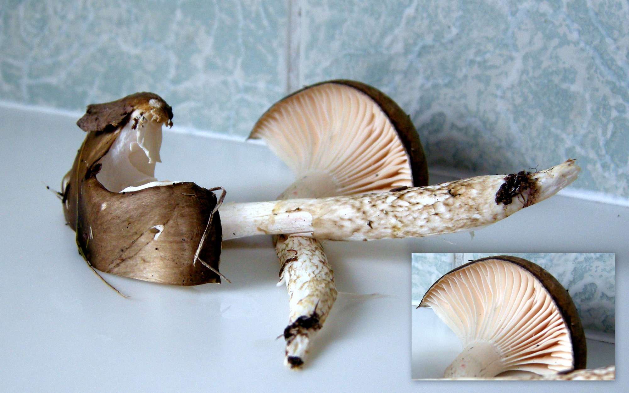 Je ne suis pas sûr d'avoir observé tout ça à l'époque ! Gluant : oui, ici le chapeau a séché mais on voit encore le pied visqueux ; sporée blanche : oui ; les lames : je ne sais plus.