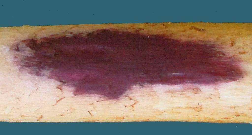 Ici, bien que la réaction soit un peu ancienne comme l'indique l'état de la surface du stipe, il n'y a pas de violet mais du rouge vineux très soutenu. Rien que te très normal donc.
