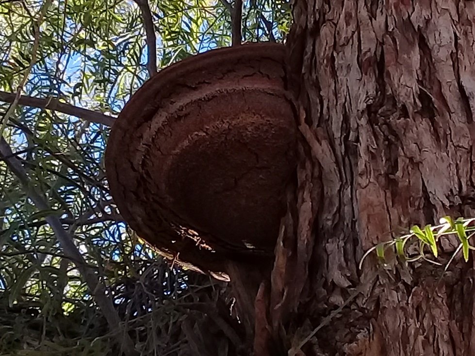 J'ai fait une inspection des shinus molle de laghouat ville aujourd'hui 30 01 2020 avec les enfants( je n'ai plus l'âge de grimper sur les arbres :triste: !) et ma foi l'Inonotus rickii semble s'y plaire: un arbre sur deux est touché et la plupart des arbres infectés sont déjà à demi mort.Il est vrai il s’agit d'arbres assez âgés Il me semble que l'anamorphe peut rester sur l'arbre plus d'une année vu la vieillesse de certains échantillons. La taille est parfois considérable: une bonne trentaine de centimètres pour le plus grand que j'ai pu trouver à ce jour.Ceux d'aujourd'hui sont tous secs et très légers( je suppose donc morts). Quelques photos!