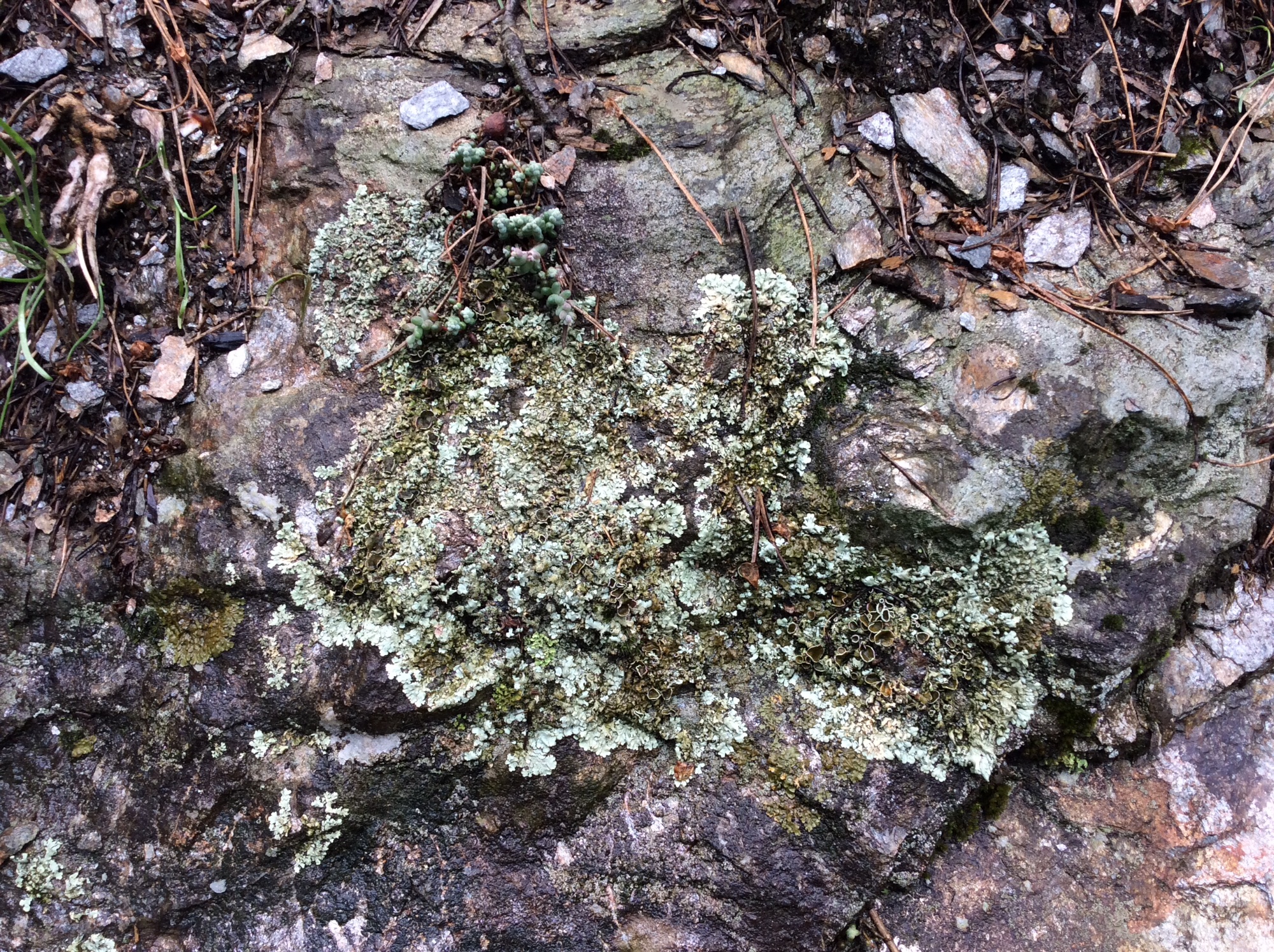 * En verdâtre je vous débusque un autre Xanthoparmelia, de type X. pulla celui-là, qui s'est glissé dans l'image pour faire plaisir à Thierry