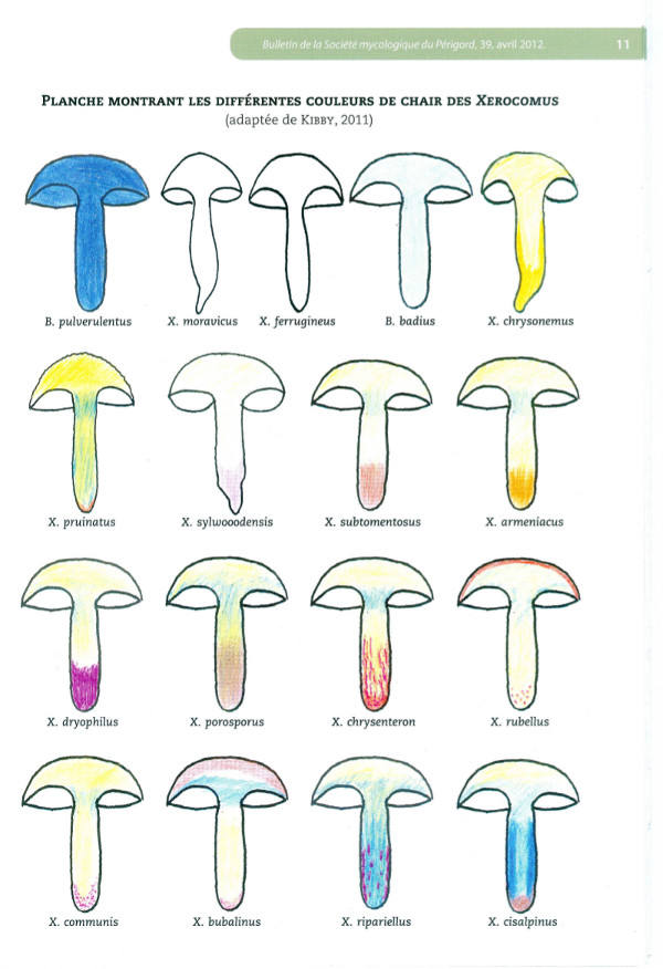 Je me demandais à quel moment on allait sortir cette planche sur laquelle je me précipite au moindre Xerocomus. Mais comme on n'a jamais tous les critères, tu poses bien le problème, il faudrait définir lequel est le plus important : la cuticule plus ou moins foncée, plus ou moins craquelée, la chair plus ou moins jaune ou plus ou moins rouge, le bleuissement plus ou moins net, les ponctuations qu'on voit mal, ou bien les spores un chouia plus grandes ou plus petites, leurs éventuelles striures qu'on ne voit pas toujours etc etc. Comme disait Fifi, infernal ! C'est vrai que le passage d'un Guillaume aiderait.