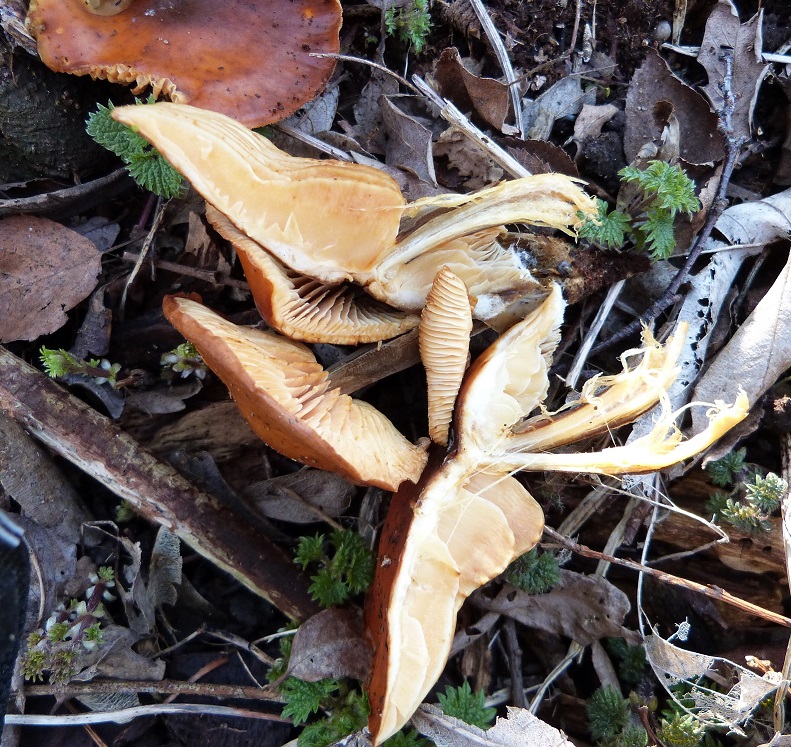 Il sente le champignon de paris et les spores sont blanc, la sève deviens orange je pense, il y a pas d'anneau ni de boulbe au pied, si j'ai oublier un truc dite le.
