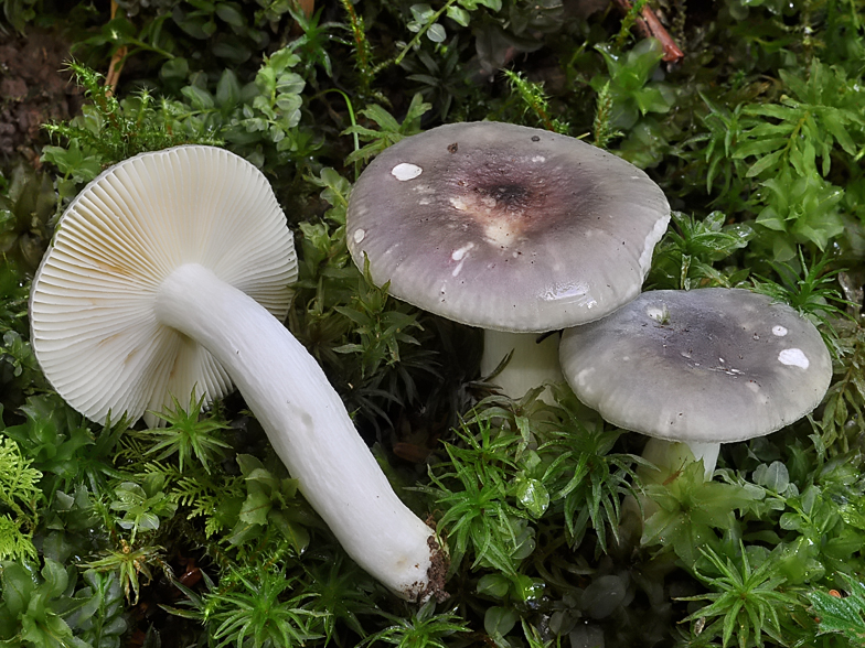 Vous aurez reconnu Russula cavipes, typique avec son odeur de safran prononcée, ses lames aux subtils reflets jaune citron, ses cannelures marginales une fois mûre, sa saveur âcre et ses couleurs allant du vert pâle au violet et sa réaction rose à l'ammoniaque.