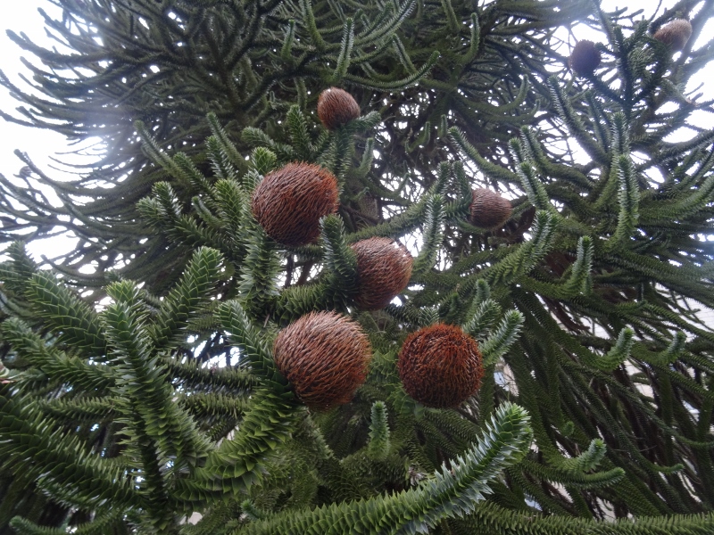 Celui-ci fait l'admiration de beaucoup. En voir de si grand est peu commun. Un argentin me parlait une fois qu'il y en avait beaucoup dans son pays. Je ne suis jamais monté dedans. Araucaria araucana, le désespoir des singes et des mycophiles (pas beaucoup de champis dessous).