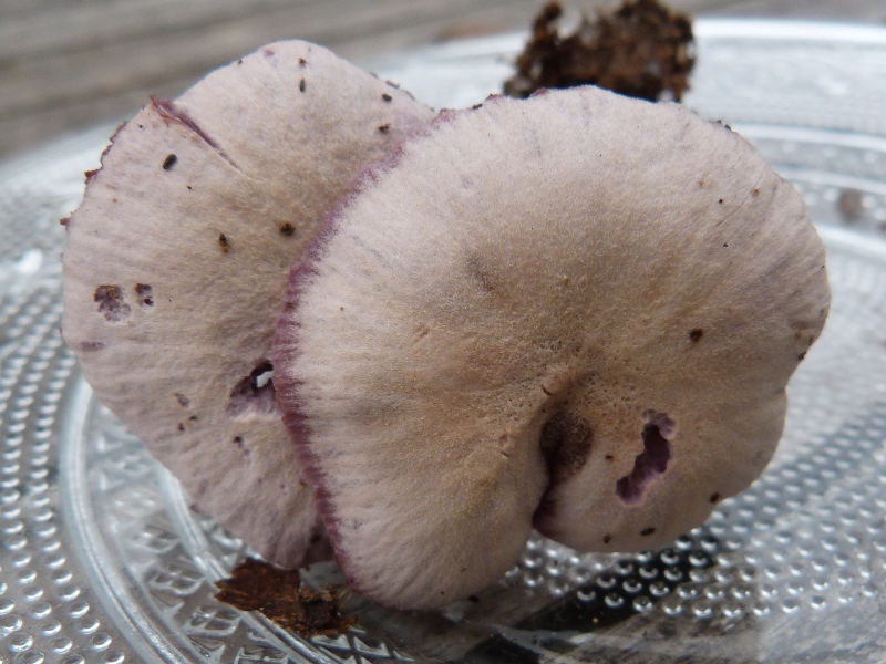 Tu as ici l'exemple typique d'un champignon hygrophane desséché, normalement violet très soutenu et qui peut devenir complètement blanc (s'il n'est pas trop vieux, il peut reprendre une grande partie de sa couleur si tu le trempes dans l'eau).