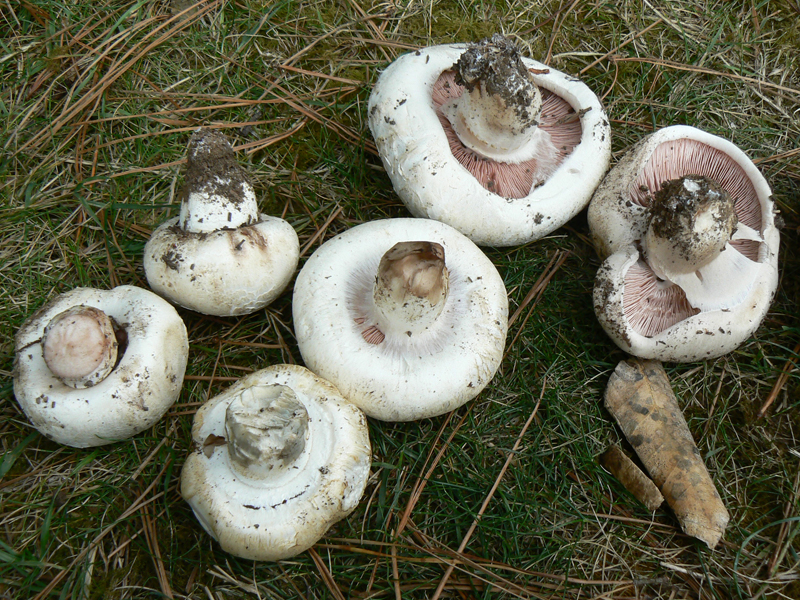 Une belle bande d'Agaricus poussant parmi les pins maritimes, tentes et caravanes de notre camping de Belle-ile.