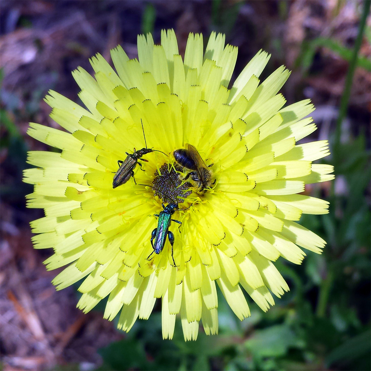 Les mêmes insectes que l'autre jour mais une autre fleur. Peut-être déjà présentée, je ne la retrouve pas. Dans notre terrain de Palombaggia et en beaucoup d'autres endroits, avril 2019.