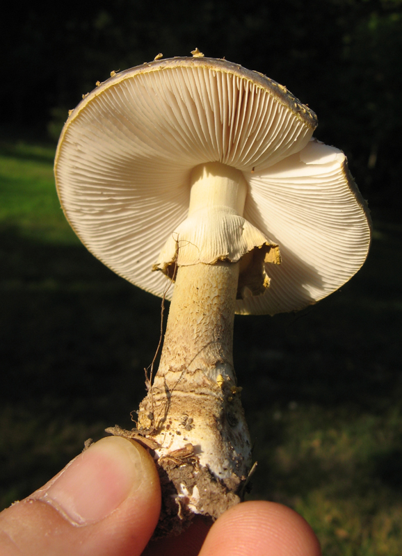 Le chapeau présence une jolie coloration gris plombé clair, ainsi que de petits restes du voile disséminés irrégulièrement.