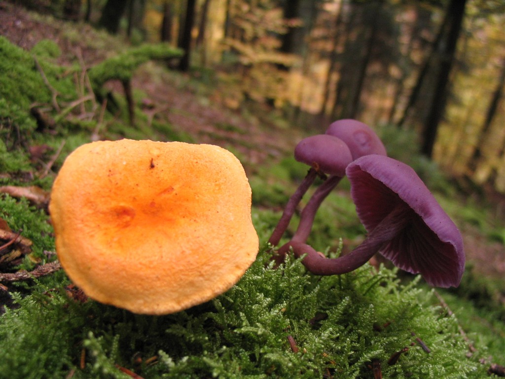 Une dernière chose : comme tu l'auras deviné, le champignon orange sur la photo de Fouad n'est ni Laccaria amethystina ni Cortinarius violaceus. On te le laisse identifier, quand tu l'auras fait, tu auras encore progressé d'un cran. Un indice : il est orangé.