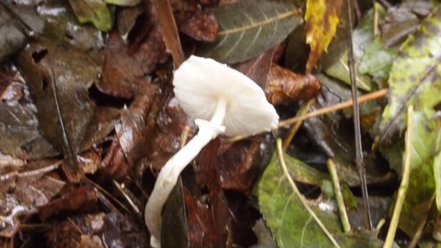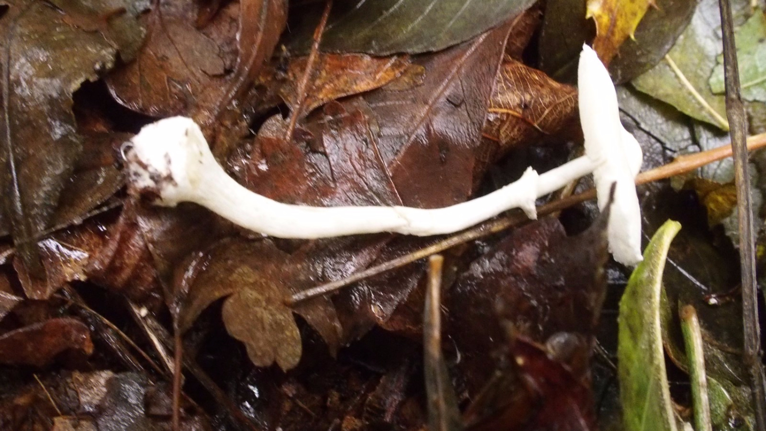 Trouvé ce WE dans les Landes, dans un bois de feuillus humide. Je suis désolé pour la qualité des photos, ça semblait ok sur l'écran pourtant... Petit champignon blanc ivoire, à chapeau 3-4 cm comme poudré et avec un minuscule mamelon au centre, pied fin et très fragile, avec un anneau ouvert vers le haut, base un peu bulbeuse. Odeur faible et non caractéristique, saveur non testée.