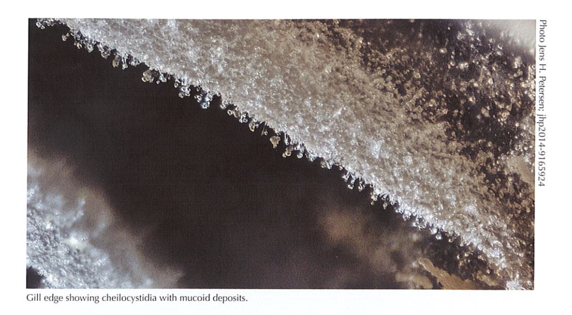 Hervé a écrit : Regarde à la loupe si les lames ne sont pas ciliées (les cystides sont parfois visibles à la loupe).J'ai regardé à la loupe bino l'arête des lames sur un exemplaire racorni d'hier. Voici deux photographies. Sont-elles parlantes ?