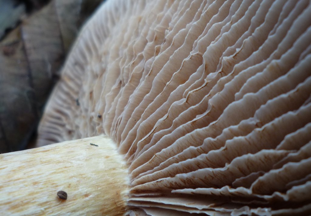 Lames : adnées. Assez claires d'aspect, je pense du fait d' un sommet peu coloré. Reflets vaguement bleutés sur les photos qui ne m'ont pas frappés sur le terrain. Arêtes très accidentées.
