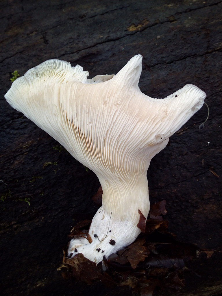 Mario DG a écrit :Pat ne nous parle pas de bois mais avec ces lames qui strient le pied pratiquement jusqu'à la base, c'est bien vers les pleurotoïdes que je m'orientais. C'est bien grand pour des Hohenbuehelia, alors oui peut-être Pleurotus. Mais ce serait bien de répondre quant au substrat.Jplm a écrit :Peut-être ni l'un ni l'autre. C'était vraiment au sol ou sur bois ?il me semble lignicole ....on s'orienterait alors vers Pleurotus sp. ???