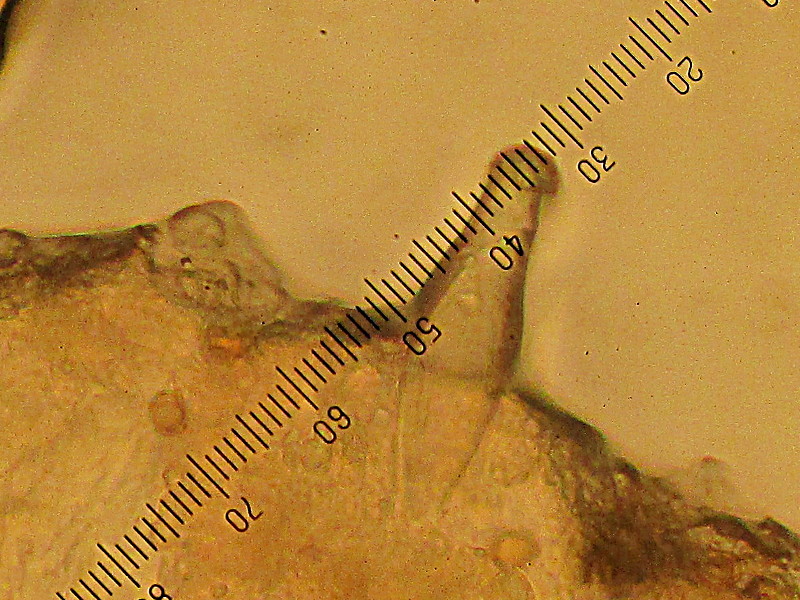 Y.Courtieu a écrit :Voici une photo d'une cheilo, avec l'échelle à côté. Ici 1 div : 2.5 µm.Ca ne correspond pas auxs cystides de I. tabacina...Je préfère autant faire une micro complète, maintenant que l'idée est lancée. Mon adresse :