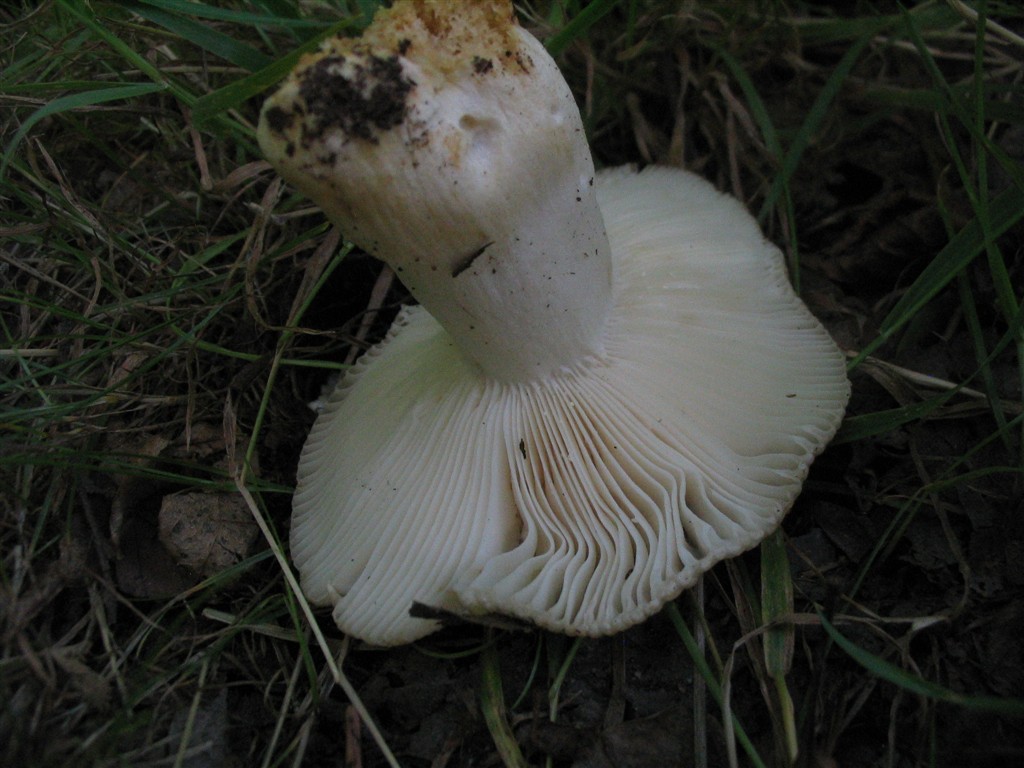 Cette russule trouvée fin juillet seule au bord d'un chemin, sans doute un peu calcaire, sous feuillus et quelques résineux. Au même endroit en face, j'avais croisé il y a un mois ce que j'avais "déterminé" comme étant R. delica.