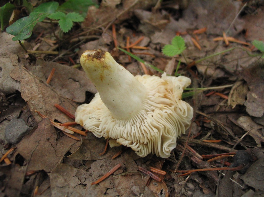 Cette russule trouvée fin juillet seule au bord d'un chemin, sans doute un peu calcaire, sous feuillus et quelques résineux. Au même endroit en face, j'avais croisé il y a un mois ce que j'avais "déterminé" comme étant R. delica.