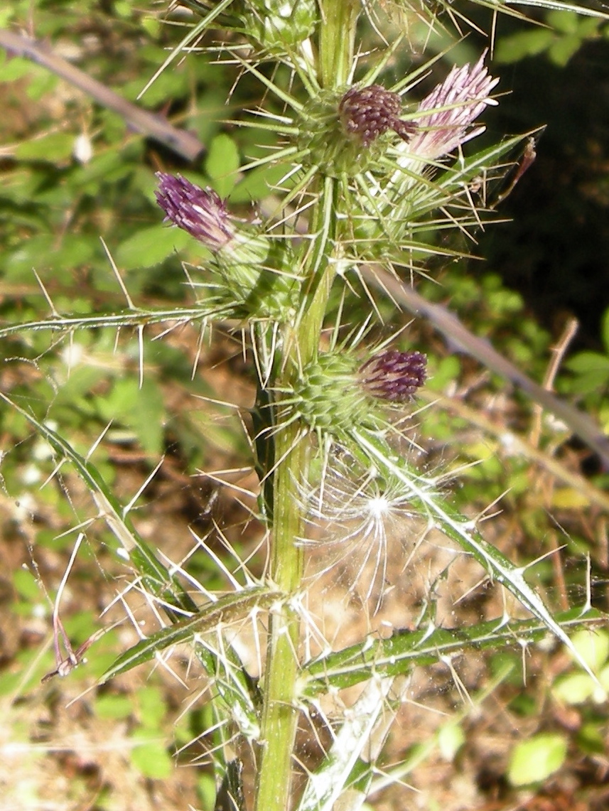La dernière je crois de cette petite série d'été, et encore un chardon. Toujours dans le massif de Bavella vers le bas du chemin du Bocca di Fumicosa, environ 1050 m, en bord de chemin. Après quelques recherches, j'irais vers Carduus pycnocephalus, mais sans aucune conviction.
