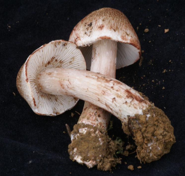 Stipe de 6 cm couvert de fibrilles rougissantes au contact.