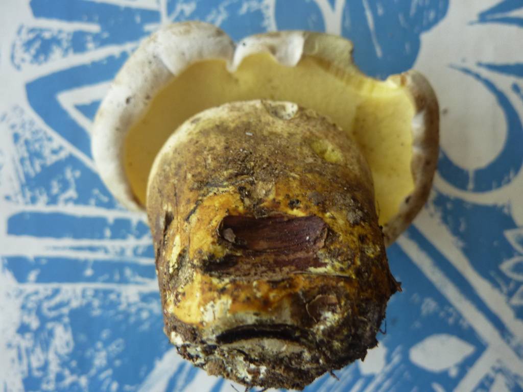 à la coupure la chair est jaunâtre et non blanche (avant de bleuir), elle est plutôt ferme alors qu'elle devrait être molle et spongieuse