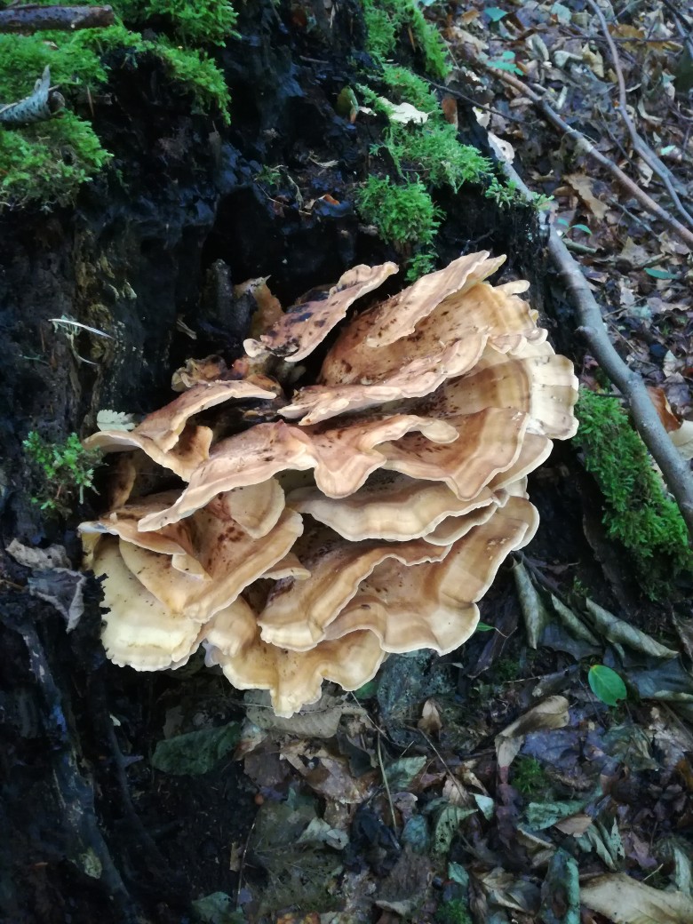 Jean-Pierre, j'essaye d'expliquer à une débutante qu'il faut voir le dessous d'un champignon, pas de l'éblouir en lui montrant qu'un mycologue expérimenté peut s'en passer. C'est pour ça que je lui dis que l'aspect des premiers peut aussi convenir à Meripilus giganteus mais qu'il faut vérifier l'hyménium. Maintenant, s'il faut juste distribuer des noms, c'est Meripilus giganteus, des adultes en haut, des jeunes en bas.