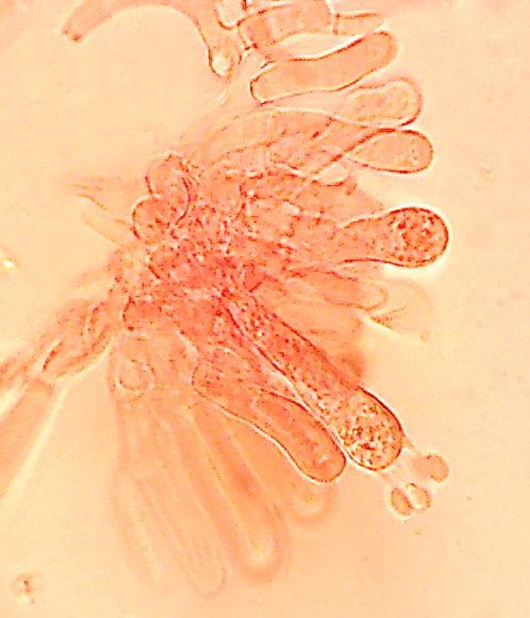 spores* 9.98-12.57 X 4.67-6.17 µm.