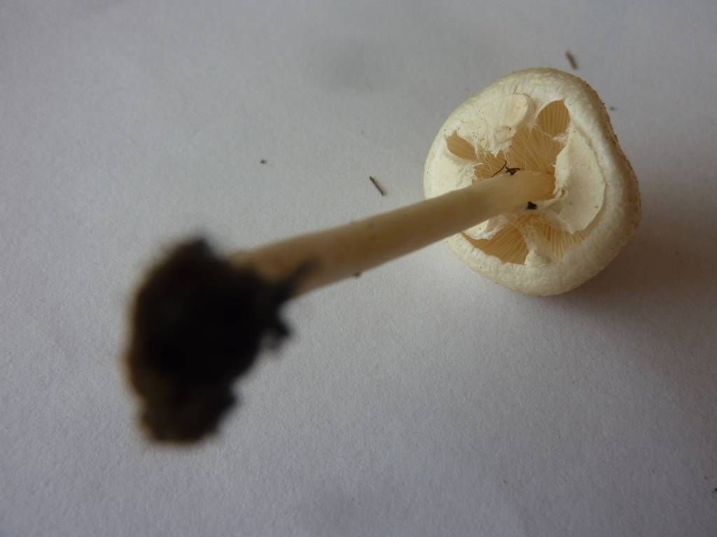 Les lames sont blanches, assez serrées, arrondies vers le pied