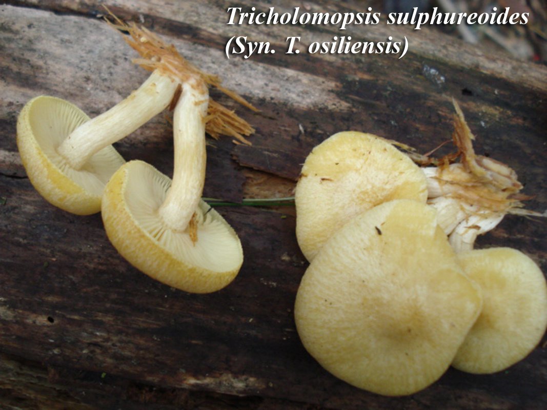 J'ajoute que Tricholomopsis decora a de fines mèches dressées et non des fibrilles et que ses teintes sont jaune plus vif.