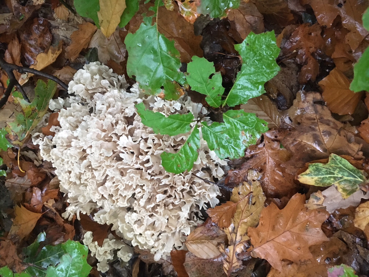 Première rencontre avec ce champignon aussi magnifique qu'atypique. Assez difficile de le décrire plus précisément que par sa taille (+/- 20cm de diamètre), sa couleur blanchâtre/laiteuse et son aspect assez végétal finalement, entre le choux et la salade (<== si ca ce ne n'est pas une description scientifique!!!). Je n'ai pas relevé d'odeur particulière, et n'ai pas eu le courage de le goûter
