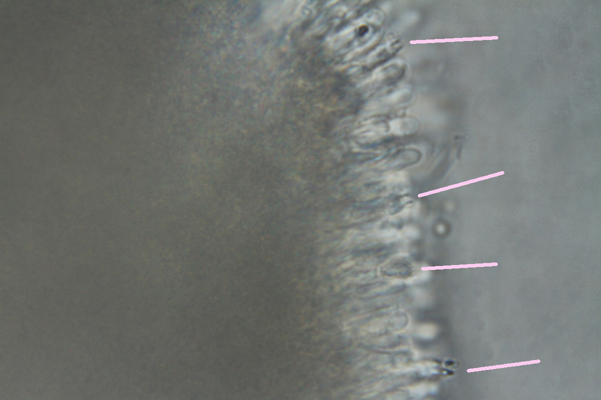 - les basides sont plus petites (au x100) que les deux-trois obs réalisées précédemment,