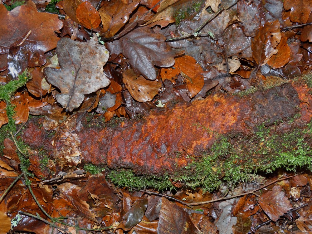 C'est sur une branche morte, tombée sur les feuilles, dans le même bois que le vieux "Ganoderme" noir.
